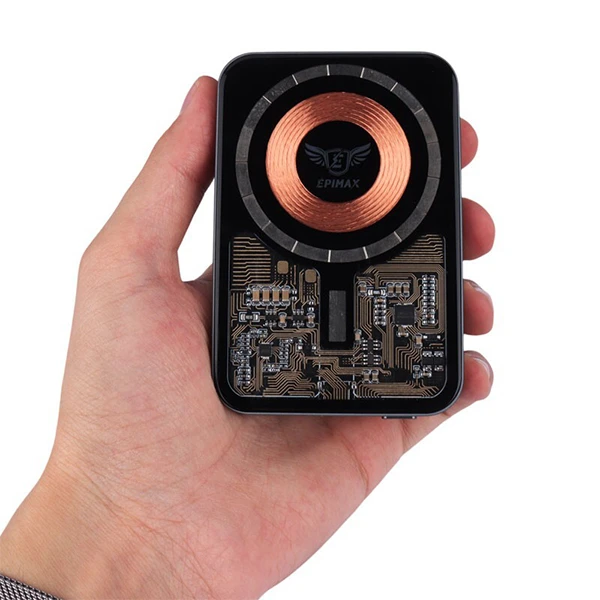 پاوربانک اپی مکس مدل EP-212 از سری لوازم جانبی ضروری برای تلفن همراه، تبلت، اسپیکر و سایر دستگاه های الکترونیکی بوده که در مواقع بی برقی و دسترسی نداشتن به برق شهری کاربرد دارد. اولین موردی که شما را جذب این پاوربانک می کند، طراحی جذاب پنل جلویی آن می باشد. این طراحی به صورتی بوده که جزئیات داخلی برد دستگاه و محل قرارگیری شارژ وایرلس، به صورت آشکارا قابل مشاهده می باشد. این طراحی باعث می شود تا مشتری کیفیت و جزئیات کار صورت گرفته بر روی این محصول را مشاهده کرده و با خیال راحتی نسبط به خریداری این محصول اقدام کند. ابعاد و وزن این گجت بسیار مناسب بوده و درون کیف یا جیبتان به راحتی قرار می گیرد. جنس بدنه از نوع فلز باکیفیت بوده که مقاومت مناسبی در برابر صدمات وارده دارد.